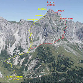 | Route / Details | Venerdì mattina presto partenza dal Ticino e via San Bernardino raggiungiamo Golm nel Montafon (AT). Da qui un bus alpino ci porta in quota da dove in meno di un'ora raggiungeremo la capanna Heinrich Hüter. Pomeriggio dedicato all'acclimatamento e possibilità di arrampicare attorno alla capanna. Sabato salita sulla Zimba seguendo la cresta est e discesa dalla cresta ovest. Domenica programma da definire a seconda della meteo e dei partecipanti con possibilità di ulteriori arrampicate e ritorno in Ticino | |