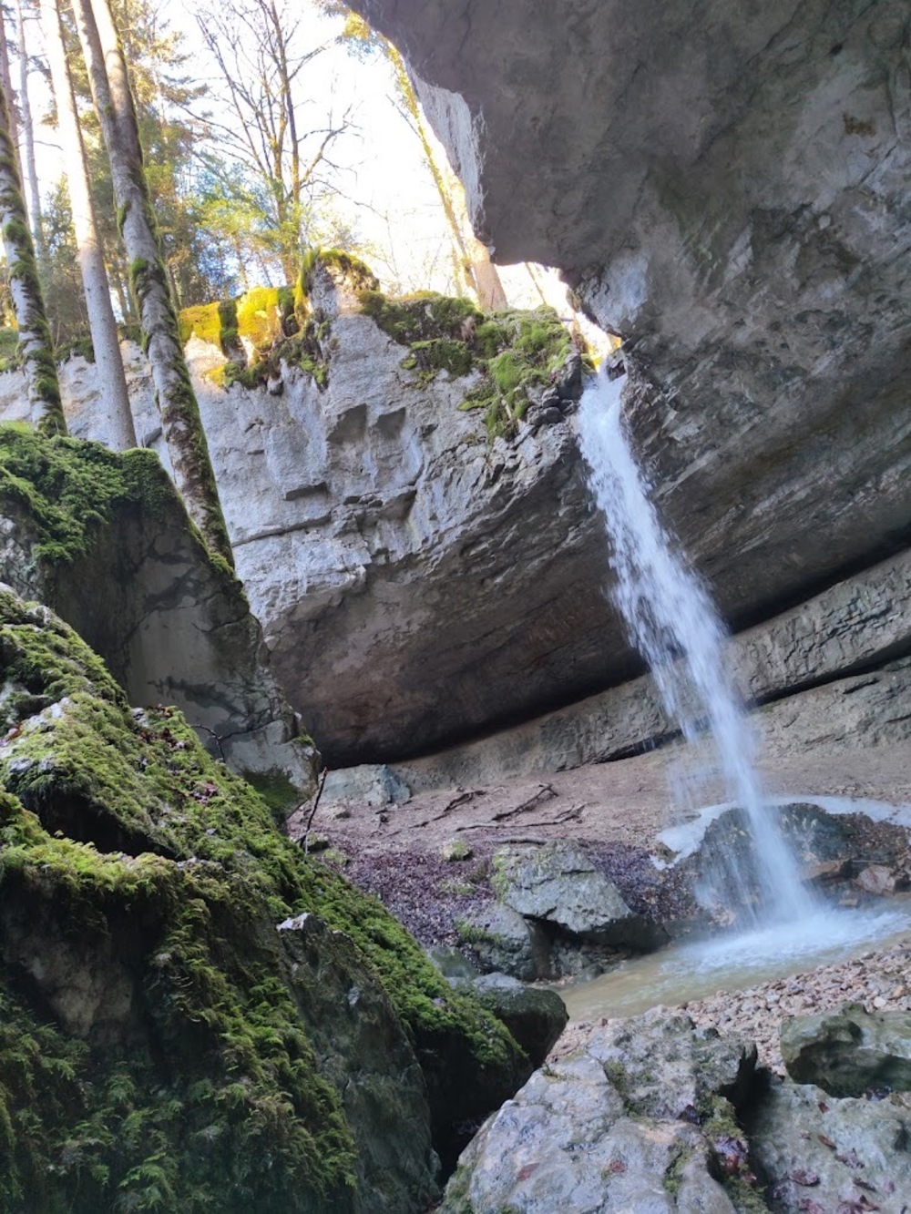 | Route / Details | En traversant la frontière franco-suisse sur le pont de Goumois, on ne se doute pas qu'une merveille de la nature se cache tout près. En effet, à une heure de marche se trouve le Bief de Vautenaivre, qui jaillit d'une énorme plaque rocheuse semi-circulaire. Cette cascade se jette dans un impressionnant cirque rocheux, environ 7m plus bas. | |