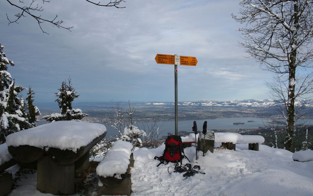 ZusatzinfoDer Höhronen ist eine klassische Schneeschuhtour: wenig Steigung, viel Horizontaldistanz und immer wieder ein Blick in die Tiefe.